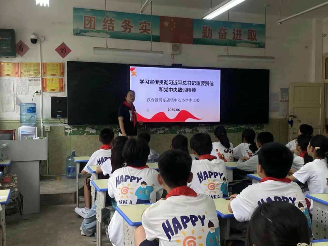 汉中市河东店镇中心小学各中队辅导员以生动语言、鲜活案例,结合图文课件向少先队员们解读会议精神,将精神融入教学,激励队员在求知路上,以少年之朝气,筑梦向未来。