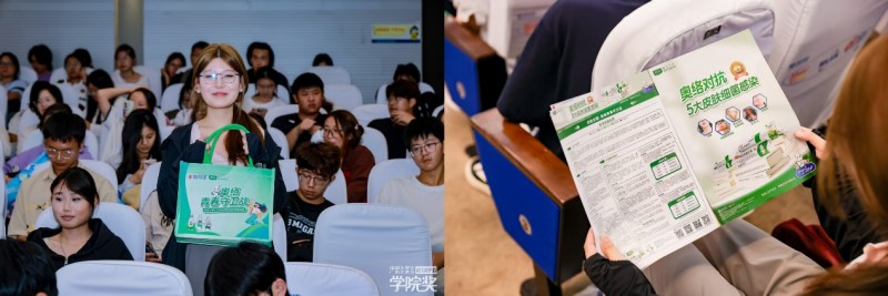 宣讲厅外的奥络品牌互动体验区,也成为了校园里的 “人气打卡点”。品牌巧妙设置了“投投乐”等与产品体验深度融合的小游戏,将产品功效化为直观体验,同学们在积极参与互动的过程中,也深刻感知了奥络“快速战痘”的专业实力,在轻松愉悦的氛围中,学子们不仅近距离体验了产品,更在欢声笑语里加深了对奥络 “守护青春肌肤” 品牌定位的信任与好感。