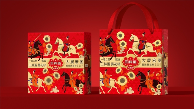 2025年三胖蛋新春礼品礼盒品鉴会,重点聚焦产品升级,以“产业赋能+文化赋能+视觉赋能”构建高端竞争壁垒:在产品端,深度绑定向日葵全产业链,通过立体式工艺凸显原料质感,搭配多元组合形态,将全产业链优势转化为高端产品硬实力;在文化端,锚定新春消费场景,深挖品牌原产地基因——作为内蒙古企业,将“蒙古马精神”与马年美好寓意深度融合,既以“稳扎稳打”彰显全产业链的深厚底气,以“一马当先”传递创新突破的发展魄力,更借“马上夺魁”“马到成功”“龙马精神”的吉祥寓意,呼应国人对新春顺遂的期盼,同时紧扣春节“嗑点好瓜子”的民俗需求,传递大富大贵、大吉大利、阖家团圆的情感共鸣;在视觉端,以红色烘托节日喜庆氛围,用金色强化高端视觉冲击,精准契合中国人对节日礼品“颜值与内涵兼具”的需求。