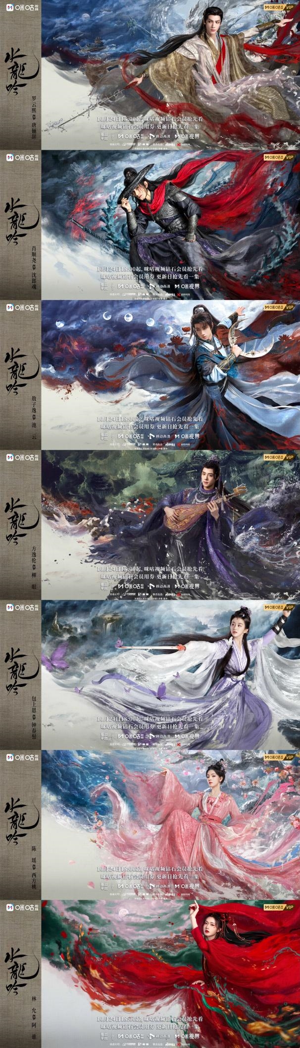 今日,玄侠剧《水龙吟》正式发布全阵容主角单人海报,以极具视觉冲击力的东方美学风格,首次揭晓剧中十二位核心人物的角色造型。此番角色阵容堪称群星辉映,各展风华:罗云熙饰演的唐俪辞雍雅贵气,温润俊朗,于神秘超然中透出侠者气度;肖顺尧饰演的沈郎魂刀锋凛冽,摄人心魄;敖子逸则将池云的潇洒倜傥诠释得恰如其分,尽显少年意气;方逸伦饰演的柳眼身着一袭紫袍,手抚琵琶独坐月下楼阁。其他角色亦惊艳亮相、风采各异:钟春髻(包上恩 饰)剑舞蝶影,西方桃(陈瑶 饰)笑靥藏锋,阿谁(林允 饰)红衣逐月,鬼牡丹(徐正溪 饰)极致风流,方平寨(王以纶 饰)紫影摇光,普珠(杨仕泽 饰)仙姿飒然,余负人(谢彬彬 饰)剑映枫火,红姑娘(姜贞羽 饰)朱衣灼华,共绘江湖绝色。