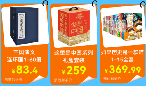 历史类图书总能让读者在书页间与过往对话。《三国演义连环画1-60册》,作为中国古典名著,图文扛鼎之作,适合收藏品鉴或作为青少年接触古典名著的入门读物,预估到手价83.4元。《这里是中国》系列礼盒套装预估到手价259元,作为典藏级国民地理书,以地理视角串联华夏文明,从青藏高原的形成到百年基建奇迹,让人在震撼中读懂中国的山河变迁与文明脉络。《如果历史是一群喵1-15全套》,借助漫画化解历史晦涩,让萌喵带你轻松学历史。