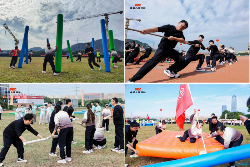 每一个动作都彰显着团队默契;“财源滚滚”项目中,参赛队员同步迈动道具,步调一致向终点冲刺;其他项目中,选手们全情投入、奋勇争先,尽情释放活力与激 情。