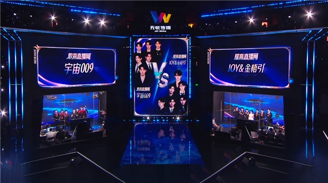 无忧之夜2025年度盛典以“天生敢耀”为主题,生动诠释了无忧传媒飞速发展的非凡历程。对无忧传媒而言,已举办6届“无忧之夜”,其意义早已超越一场普通晚会,升华为一个能够有效连接达人、粉丝与品牌的核心IP,成为无忧传媒每年最为重要的展示窗口之一。晚会一开场,由无忧传媒打造的宇宙101厂牌、JOY&金梧引等男团便带来《火力全开》、《万物生》团播大秀,瞬间点燃全场。本届无忧之夜打造“直播间比拼 和 主舞台展演 ””全新赛制,晚会别出心裁地在主舞台对面设立了“敢赢直播间”与“耀赢直播间”,让观众通过直播间实时弹幕投票,直接决定两个直播间的表演者能否从“小屏”走向“大屏”。深受大家喜爱的团播——男团“宇宙009”和“JOY&金梧引”打头阵,最终“宇宙009”在粉丝的互动助力下,获得了在主舞台表演的机会。