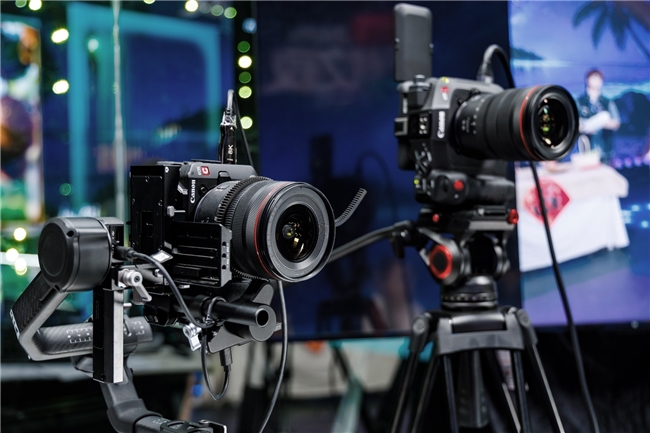 为满足严苛的画面要求,佳能“佳直播”部署了以佳能EOS C80和EOS C50组成的双机位娱乐团播直播解决方案,主机位采用的是EOS C80搭配RF15-35mm F2.8 L IS USM,游机位采用的是EOS C50搭配RF14-35mm F4 L IS USM。