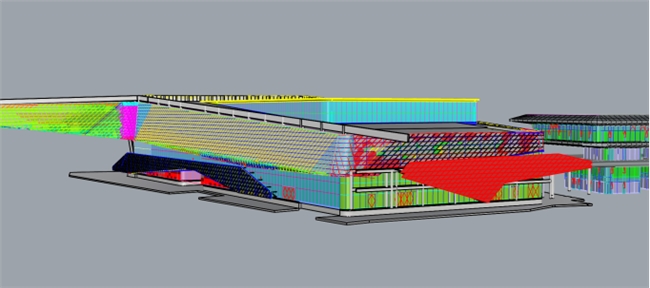 数据赋能加工与安装:通过犀牛软件深化流线型幕墙系统,利用GH程序自动提取面板数据,缩短加工周期15天。