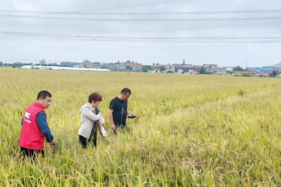 徐州连续阴雨一个多月,造成部分乡镇水稻倒伏、病虫害严重,人保财险徐州贾汪支公司在查勘定损过程中,发现部分出险农户因对减产预期不明、心存顾虑,对开展抢收晾晒的积极性不高。为科学准确评估损失、打破僵局、推动灾后减损工作顺利开展,10月16日,人保财险贾汪支公司联合区农业农村局组建专家小组,前往受灾村组,对受损水稻进行实地抽样测产。
