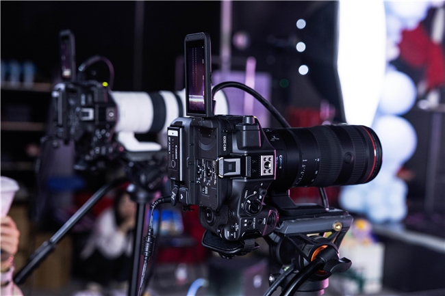 佳能 EOS C80 搭载6K全画幅背照堆栈式 CMOS感应器,搭配RF70-200mm F2.8 L IS USM Z长焦变焦镜头,能拍摄出浅景深、背景虚化优美的高品质影像。在时拍传媒以灯光棚为主的直播环境中,该设备可精准还原服饰原色与自然清透的人物肤色,让主播呈现出兼具真实感与质感的“明星感”气色。时拍传媒技术总监梁树根高度认可:“佳能的色彩科学很能打。Canon 709模式色彩直出,拍出来的色彩还原很真实、稳定,在不同光线下都能保证肤色自然好看,这对于我们唱跳主播的呈现至关重要。”