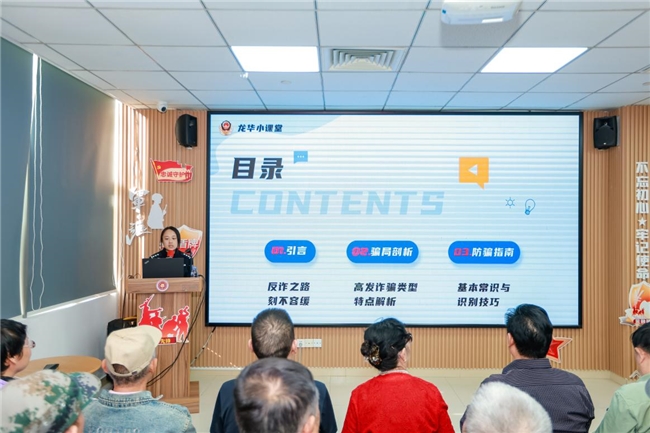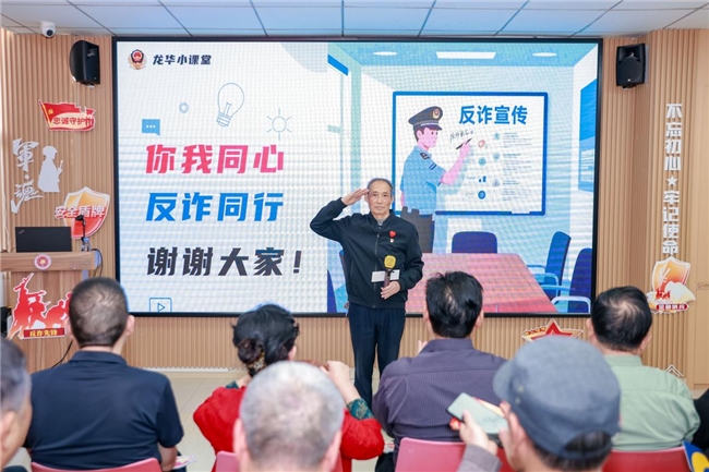 活动特别邀请深圳市公安局龙华分局的黎明警官担任“金融教官”,率先开展反诈专题宣传。黎明警官结合老年群体易遭遇的电信网络诈骗、养老诈骗等高发场景,通过拆解典型诈骗案例、讲解实用反诈技巧、现场互动答疑等形式,深入浅出地普及骗局识别要点与资金防护知识,提醒老兵们时刻保持警惕、守好“钱袋子”,强化自身金融安全防范意识,为晚年生活筑牢安全屏障。