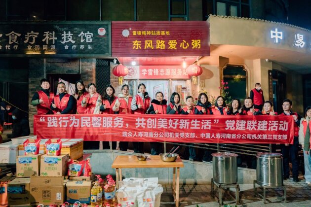 12月5日,瑞众人寿河南分公司机关党支部联合中国人寿河南省分公司机关第三党支部,前往郑州东风路爱心粥棚开展“践行为民馨服务,共创美好新生活”志愿服务活动。