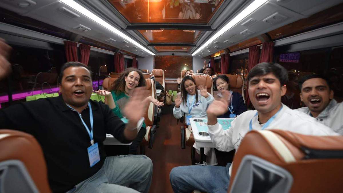 当晚,采访团兴致勃勃地体验了合肥公交音乐巴士的创新业态。当五彩斑斓的双层观光巴士行驶在夜幕下的城市道路,他们坐在巴士的上层,或欣赏城市霓虹,或引吭高歌,一会儿英语,一会儿俄语,巴基斯坦的Syed Wajahat Ali Bukhari更是以一首《童话》一展中文唱功。这样的城市文旅新玩法让外籍友人们直呼“没想到”。