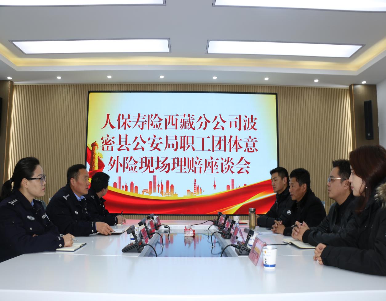 2025年12月4日上午,人保寿险西藏自治区分公司党委委员、副总经理携分公司团体保险部相关负责人、林芝市中心支公司临时负责人等一行赴林芝市波密县公安局,开展干部职工团体意外伤害保险现场理赔工作。此次活动不仅是对保险承诺的践行,更是对公安民警的深情关怀与致敬。