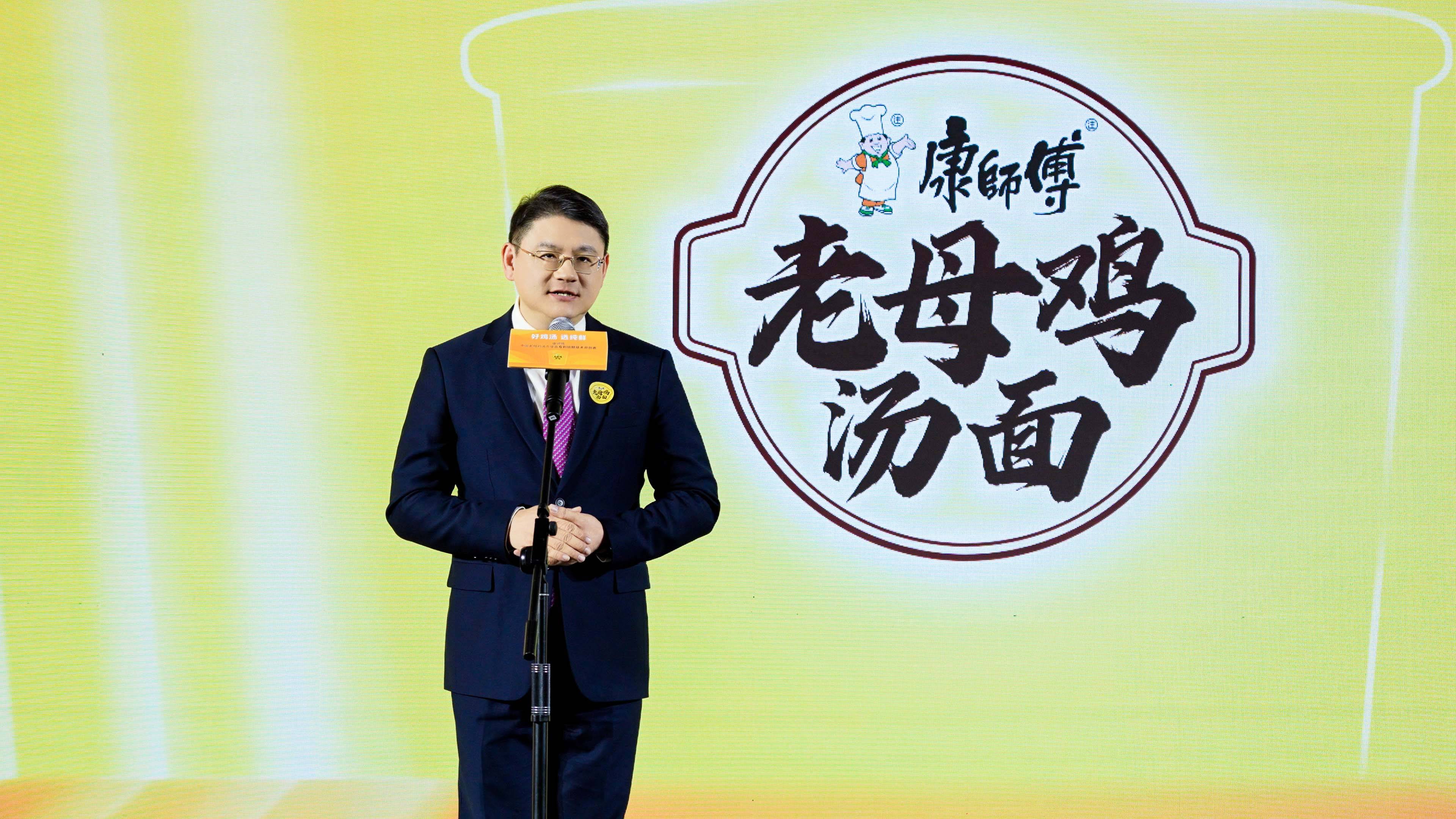 “作为深耕中华饮食文化三十三年的品牌,康师傅始终坚信要守护这一口温暖滋味,守护我们共同的文化根脉,” 康师傅方便面事业总裁刘国伟在致辞中表示,“今天我们带来的不仅是一碗老母鸡汤面,更是一份真诚的消费承诺。我们既要巩固方便面产业的‘硬支撑’,更要传递中华饮食文化的‘软温度’。”