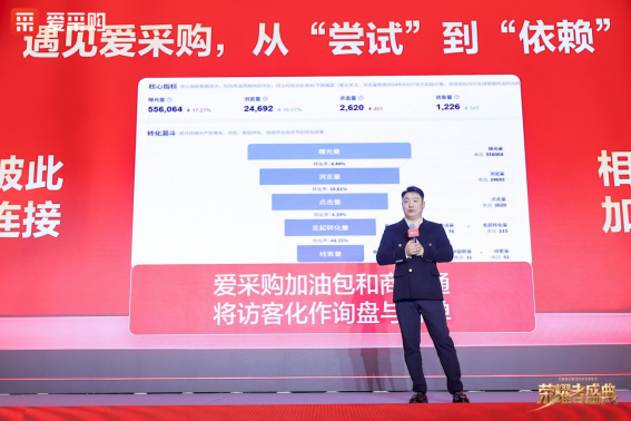 在开幕致辞结束之后,百度ToB垂类业务总经理甘露登台演讲。这一年,爱采购见证了众多中小企业在起伏市场中韧性生长、于挑战中主动求变的坚定身影。爱采购与中小企业已经成为共担风雨、共享成长、共生共荣的同行者。正如甘露所言:“我们深知,爱采购走到今天离不开每一位客户的信任与支持,我们也坚信,爱采购的明天依然将与B2B行业紧紧相连,与中国制造的时代强音同频共振。”