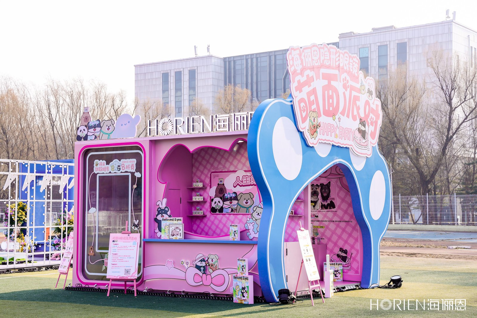 演出前,海俪恩主题展台以一个软萌的“狗爪”造型空降校园,瞬间成为同学们的热门打卡地。展台侧面那只巨大的可爱狗爪,仿佛在向每一个路过的同学发出温暖的“碰爪”邀请。展台内部,海俪恩收养的两只萌宠“蛋挞”和“黑莓”以各种可爱形象出现在各个角落,实现品牌符号的深度渗透。
