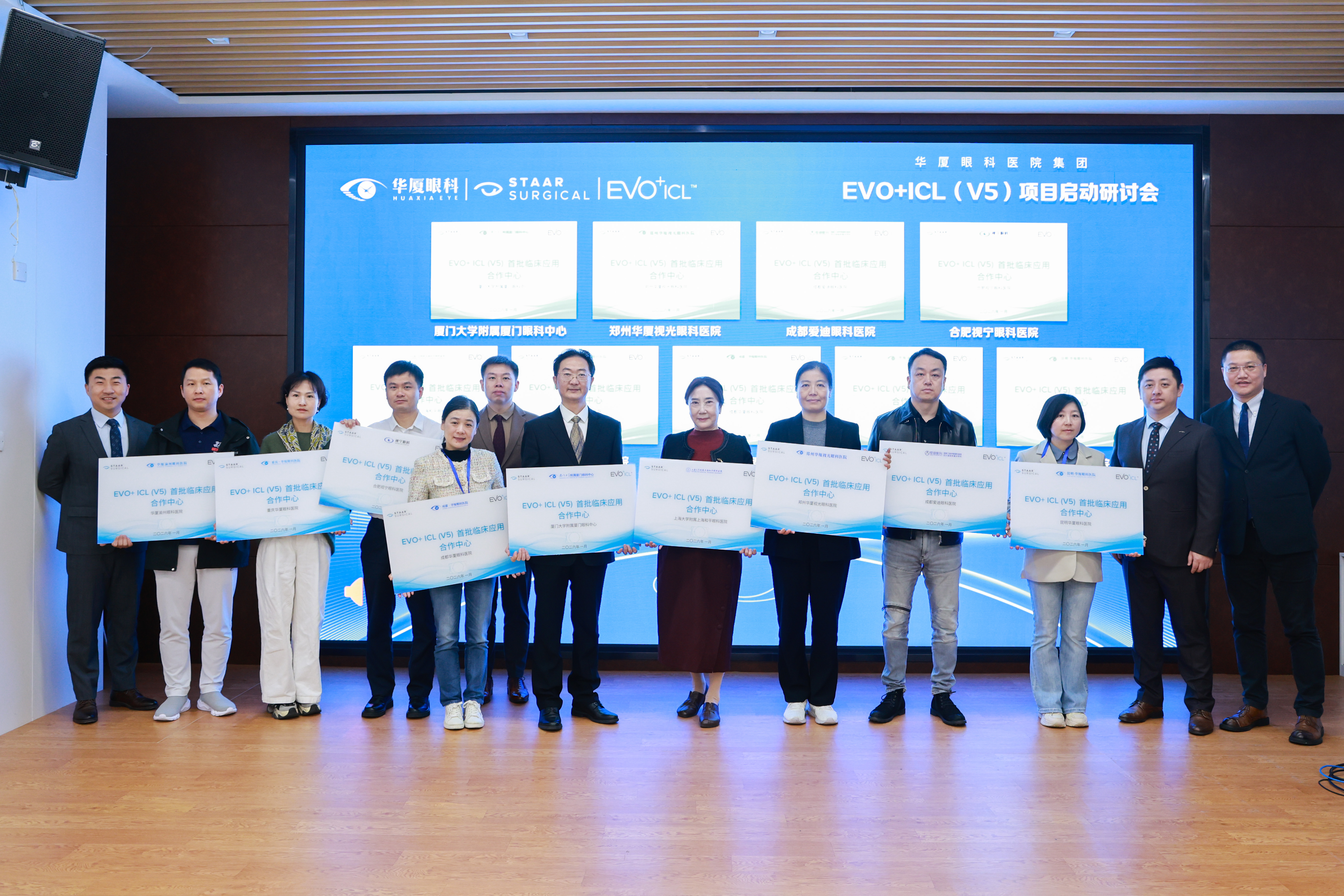 厦门大学附属厦门眼科中心、郑州华厦视光眼科医院、成都爱迪眼科医院、合肥视宁眼科医院、上海大学附属上海和平眼科医院、重庆华厦眼科医院、成都华厦眼科医院、华厦渝州眼科医院、昆明华厦眼科医院等多家华厦眼科集团旗下医院获授“EVO+ ICL (V5)首批临床应用合作中心”。