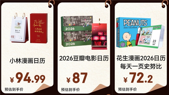 除了知识与文化的汲取,日历也能为日常生活注入一份轻松的暖意与松弛感。治愈系日历致力于软化时光的棱角,《小林漫画日历》以其敏锐幽默的观察,勾勒生活百态,带来轻松时刻;《2026豆瓣电影日历》每日推荐一部佳片并附经典台词,如同一位专业的私人观影顾问;《花生漫画2026日历》则凭借史努比及其伙伴的萌趣日常,传递简单纯粹的快乐,营造温馨放松的氛围,活动直降到手价72.2元。
