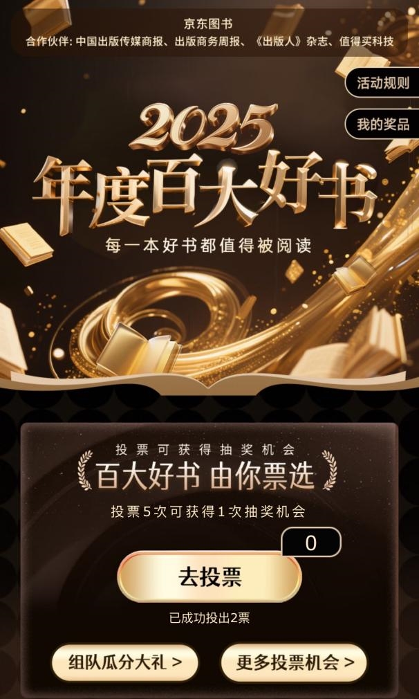 在规划未来一年的时光陪伴时,京东图书诚邀读者们一同梳理过去一年的阅读风景。作为本次京东图书年终盛典的特别单元,京东图书与光明网联合发起的“2025年度百大好书”全民票选正在火热进行中。