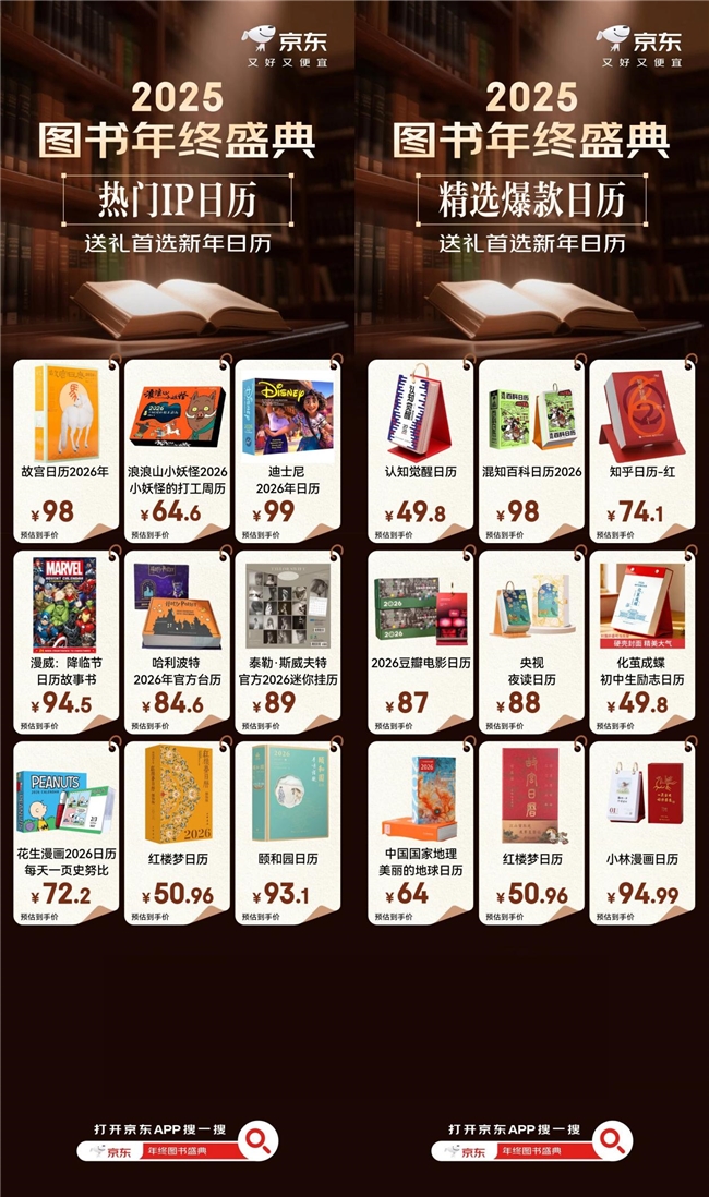 岁末换新,一本精心挑选的日历不仅是时间的刻度,更是陪伴新一年成长、收获与治愈的亲密伙伴。京东图书“年终盛典”正火热进行中,汇集多款2026年最新日历,涵盖从传统文化到热门IP、从知识充电到生活治愈的多元主题。即日起至12月31日,打开京东APP搜索“图书年终盛典”,即可进入主会场,以优惠价格,为新年的书桌案头添置一份独具心意的时间礼物。