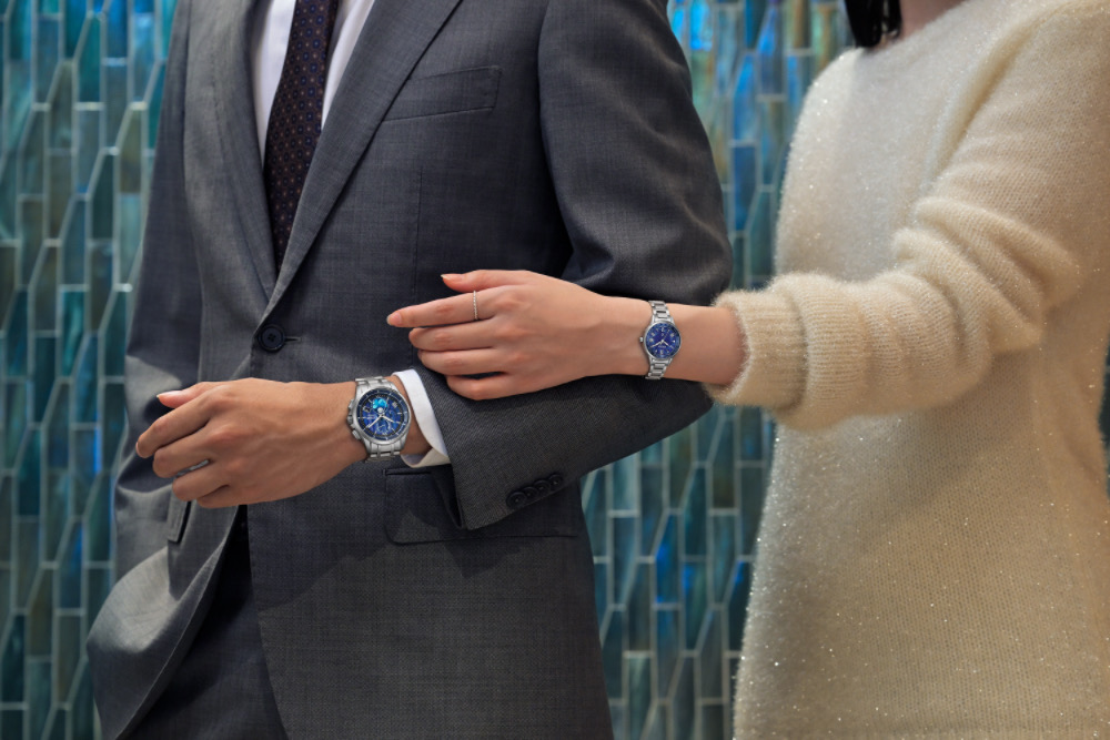 彩绘玻璃花窗的精妙之处在于其本质是“透光的墙”,兼具透光与墙体支撑功能。光线透过大幅花窗,改变了罗曼式建筑因采光不足而沉闷压抑的氛围,其丰富的色彩和造型,在光与影的雕琢下变成了美艳绝伦的艺术品,从而造就了教堂内部神秘灿烂的景象。这份智慧被西铁城融入制表工艺:两款腕表搭载的光动能多局电波机芯,可以将可见光转化为持久动力,恰如爱情将日常点滴淬炼成永恒记忆。防水性能象征爱情足以经受岁月洗礼,而防反射涂层蓝宝石玻璃表镜则确保这份承诺永远清澈如初。