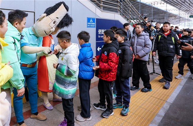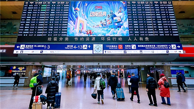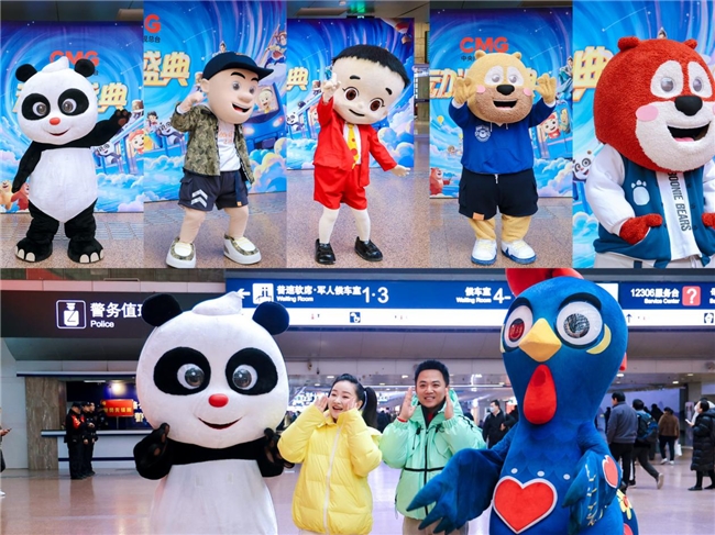 奇妙之旅从北京西客站的候车大厅开始,这里被布置成《动漫盛典》的专属空间,大头儿子一家、熊猫和和、熊大熊二、光头强等众多动漫人偶与中央广播电视总台少儿节目主持人金豆哥哥、徐柳姐姐,一起迎接南来北往的动漫爱好者。旅客们被这里的动漫场景吸引,纷纷拿出手机拍照打卡。