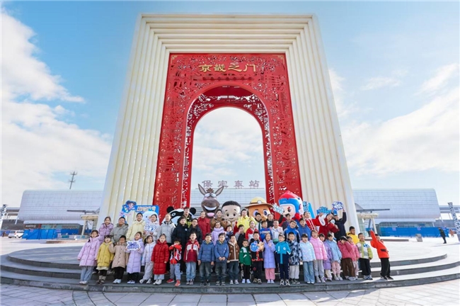 动漫专列抵达保定东站后,欢乐还在延续,保定的大朋友、小朋友们早早就在站外的京畿之门下热情迎接,他们为远道而来的小伙伴们介绍当地知名景点和各类美食。