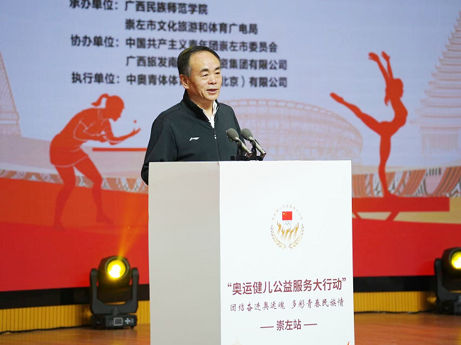 国家体育总局体育器材装备中心主任、中国奥委会市场开发部主任于建勇在致辞中表示,“奥运健儿公益服务大行动”作为一项品牌公益活动,旨在传播奥林匹克精神,激励大众拼搏进取。本次活动走进广西民族师范学院,正是希望让奥运精神与丰富多彩的民族体育文化交相辉映,共同搭建促进民族团结、全民健康的桥梁。他期待通过奥运健儿的故事与民族体育互动,激励青年学子,深化文化交流,让团结、奋进的体育精神广泛传播。