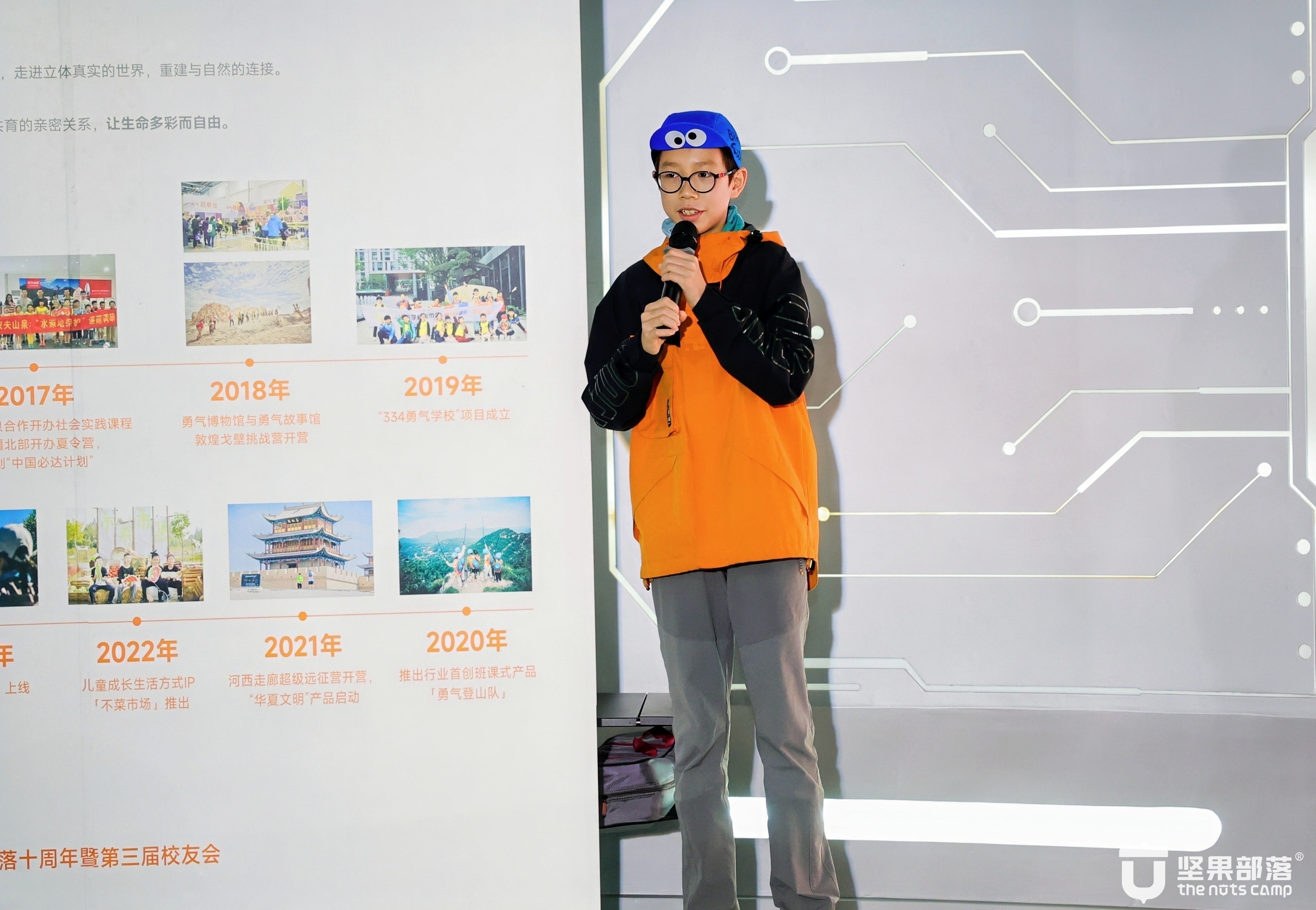 校友会上,坚果部落创始人张兆博回顾了机构始于2015年的创业历程。在“营地教育”尚未成为明确概念的年代,正是第一批家长的信任,推动坚果部落迈出第一步。