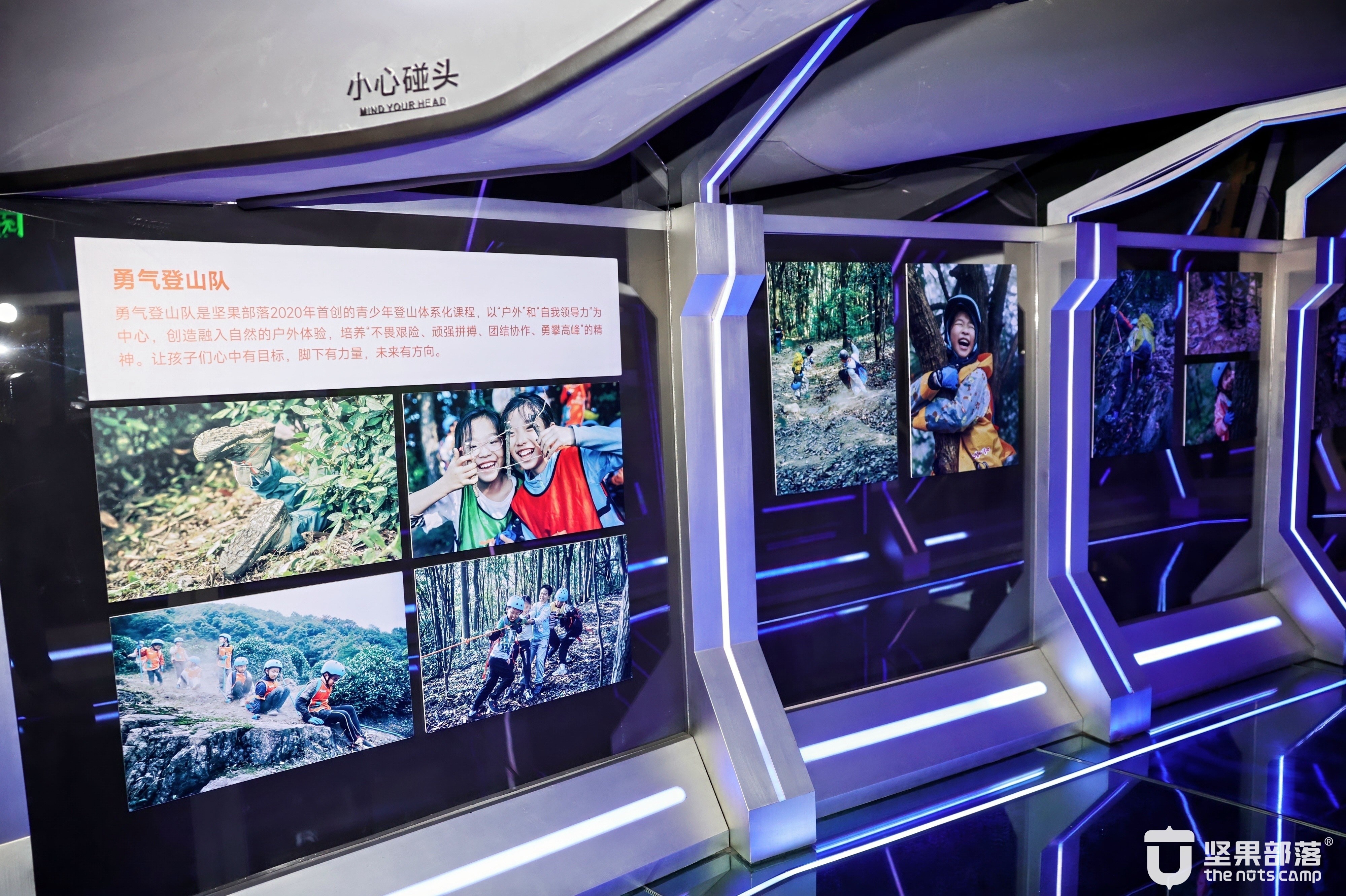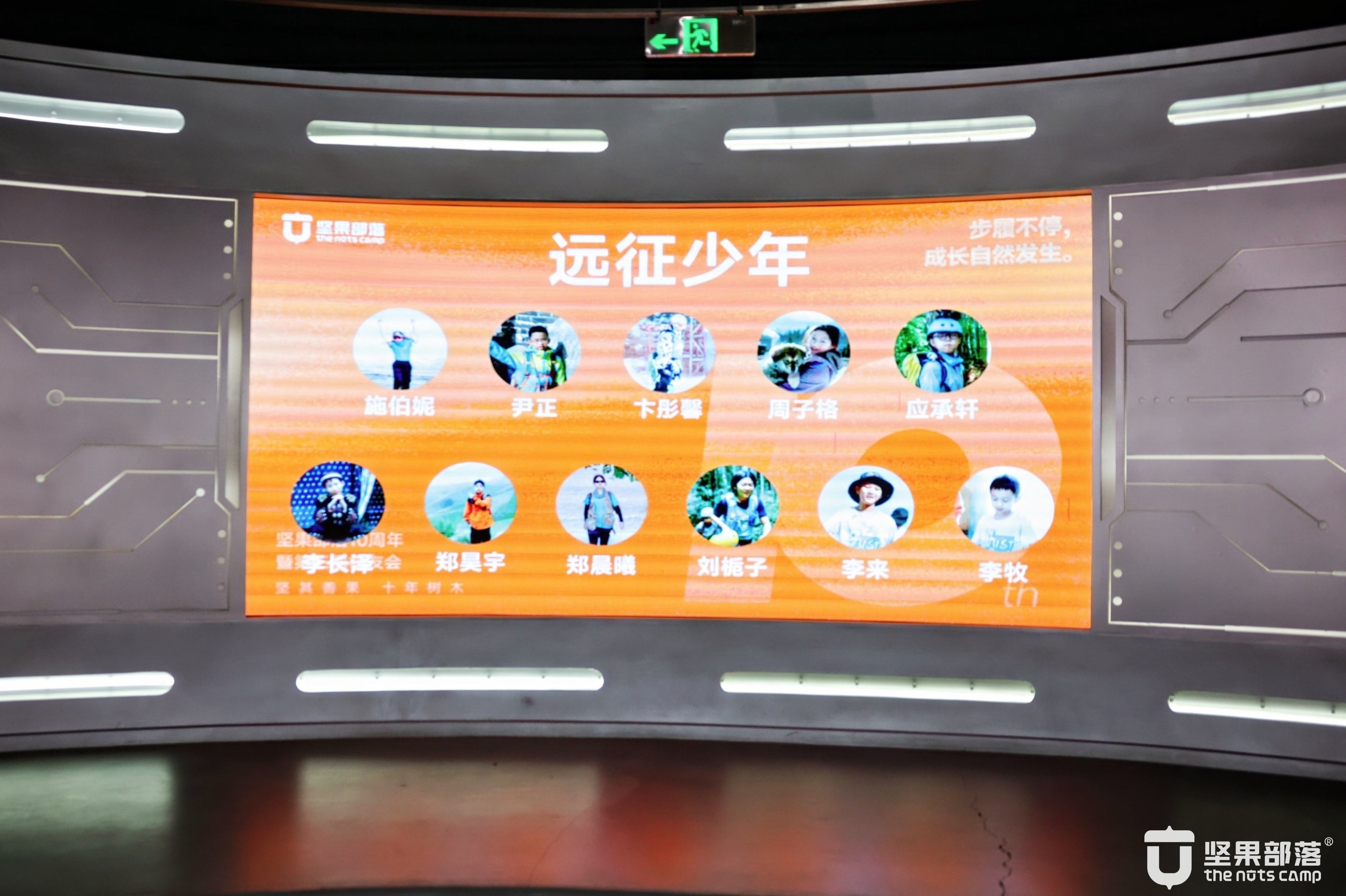 现场同步举办的“坚果部落十周年摄影展”,以影像方式呈现十年间孩子们在山野中的笑脸、汗水与突破。从第一次攀树到雪山登顶,从小组协作到独立带队,这些瞬间共同构成一部“成长档案馆”,让所有参与者看见,在自然中绽放的生命如何获得深度、广度与韧性。