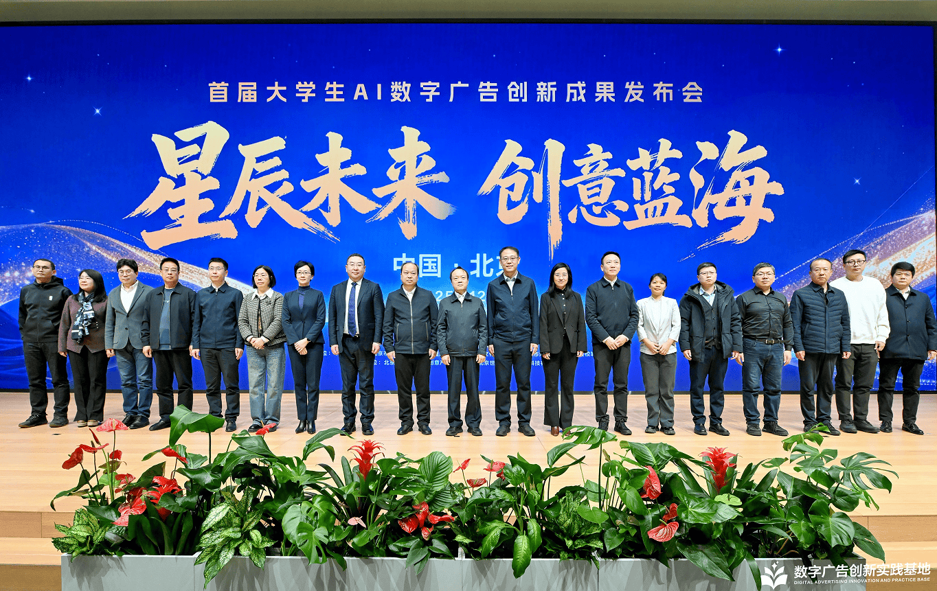2025年12月19日,“星辰未来 创意蓝海”首届大学生AI数字广告创新成果发布会在位于昌平区的数字广告创新实践基地举办。国家市场监管总局、中国广告协会、北京市市场监督管理局、北京广告协会、昌平区人民政府、好未来集团等负责人出席活动并致辞,共同见证高校青年学子在AI数字广告领域的创意成果。