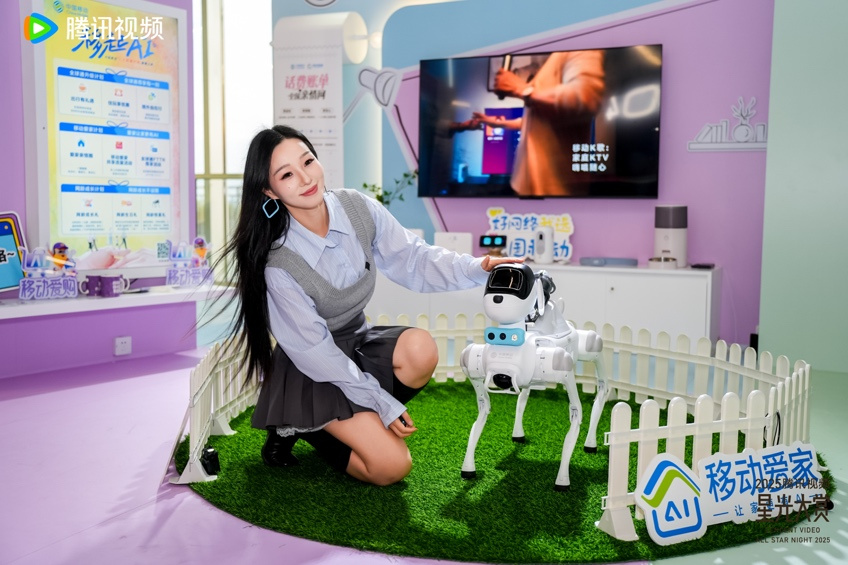 “移动爱家”以温暖日常呈现未来之家,观众通过“全国亲情网”的家庭连结、“智慧云盒”的语音智控,并与机器狗“灵犀”畅快互动,感受智能陪伴的温度;“动感地带”化身青春潮流基站,以演唱会、体育赛事等权益回应了年轻群体对文化认同与社群体验的渴望;“全球通”如同品质生活沙龙,通过“逐马计划”等尊享服务,诠释品质生活体验。而“移动爱购”与三大回馈计划,则以趣味设计,迅速点燃参与热情,让智慧消费变得生动可玩。
