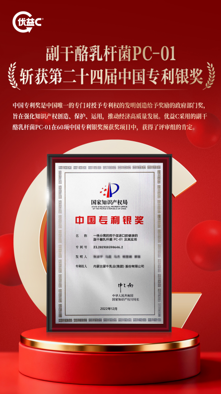 蒙牛深耕专利益生菌领域研究,荣获国家科学技术进步二等奖、中国专利银奖等多项重量级科研荣誉。其中,自主研发的中国专利益生菌PC-01(中国发明专利ZL201910590646.2),耐胃酸胆盐、99.9%强活性直达肠道,作为更适合中国人体质的创新成果,突破了益生菌基础研究的瓶颈。
