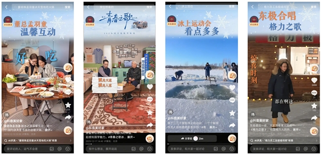 在话题运营上,“青春之歌冰雪季”更是捕捉亮点,精准发力。#董明珠被抚远的鱼“拴住”了#迅速进入抖音上升热点榜,#董明珠挑战把东极小屋变成暖房#位列种草榜TOP20,多个热点话题借助嘉宾互动、产品实测、文化体验等优质内容激发用户自发传播,推动最终项目总曝光突破5亿。更重要的是,以直播、短视频等内容为载体,“青春之歌冰雪季”将格力产品与“极寒生存”、“人文体验”、“青春奋斗”等主题深度绑定,成功在用户心智中牢固植入了格力“中国制造”、“极寒适配专家”的品牌标签,最终实现传播效果与品牌价值的双赢。
