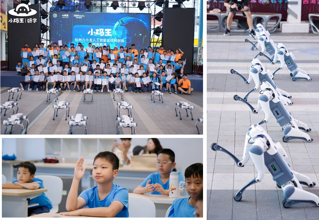 在研学产品创新实践中,小码王联合西湖文旅文三数字街区、云深处科技打造的“杭州六小龙人工智能实战科创营”成为标杆之作。该科创营开创性将工业级四足机器人引入教学体系,由两位教育部长江学者领衔指导课程开发,以模拟救援等真实场景为核心,带领学员拆解前沿AI技术原理,让抽象的人工智能知识变得可触可感。科创营历时2个月,吸引了全国近千名学员报名参与,凭借优质的教学体验与显著的学习成效,收获了众多家长和孩子们的认可,成为AI技术赋能科创研学的典范。