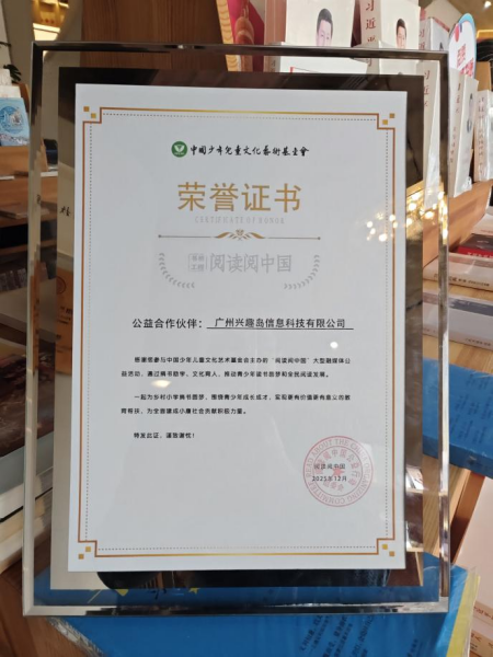 活动现场,教育部相关领导为兴趣岛授予了 “阅读阅中国合作伙伴” 荣誉证书,这是对兴趣岛在乡村儿童阅读帮扶、践行全民阅读使命中的突出表现给予的高度肯定,也对其持续践行社会责任的行为予以鼓舞。