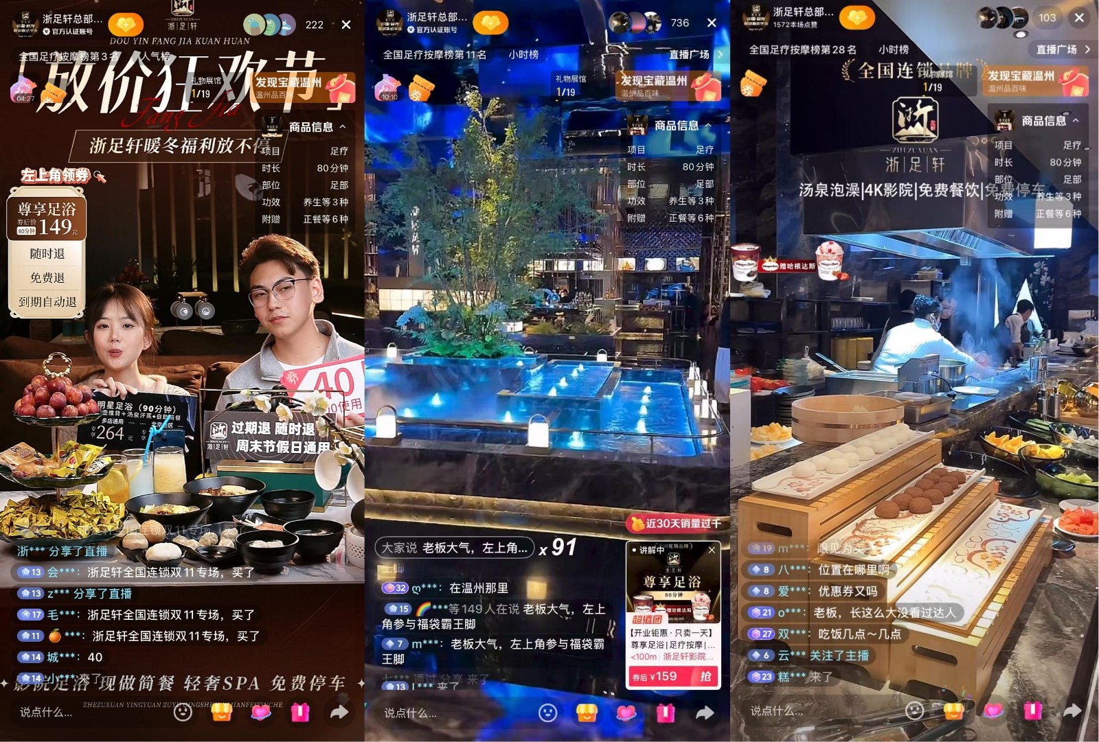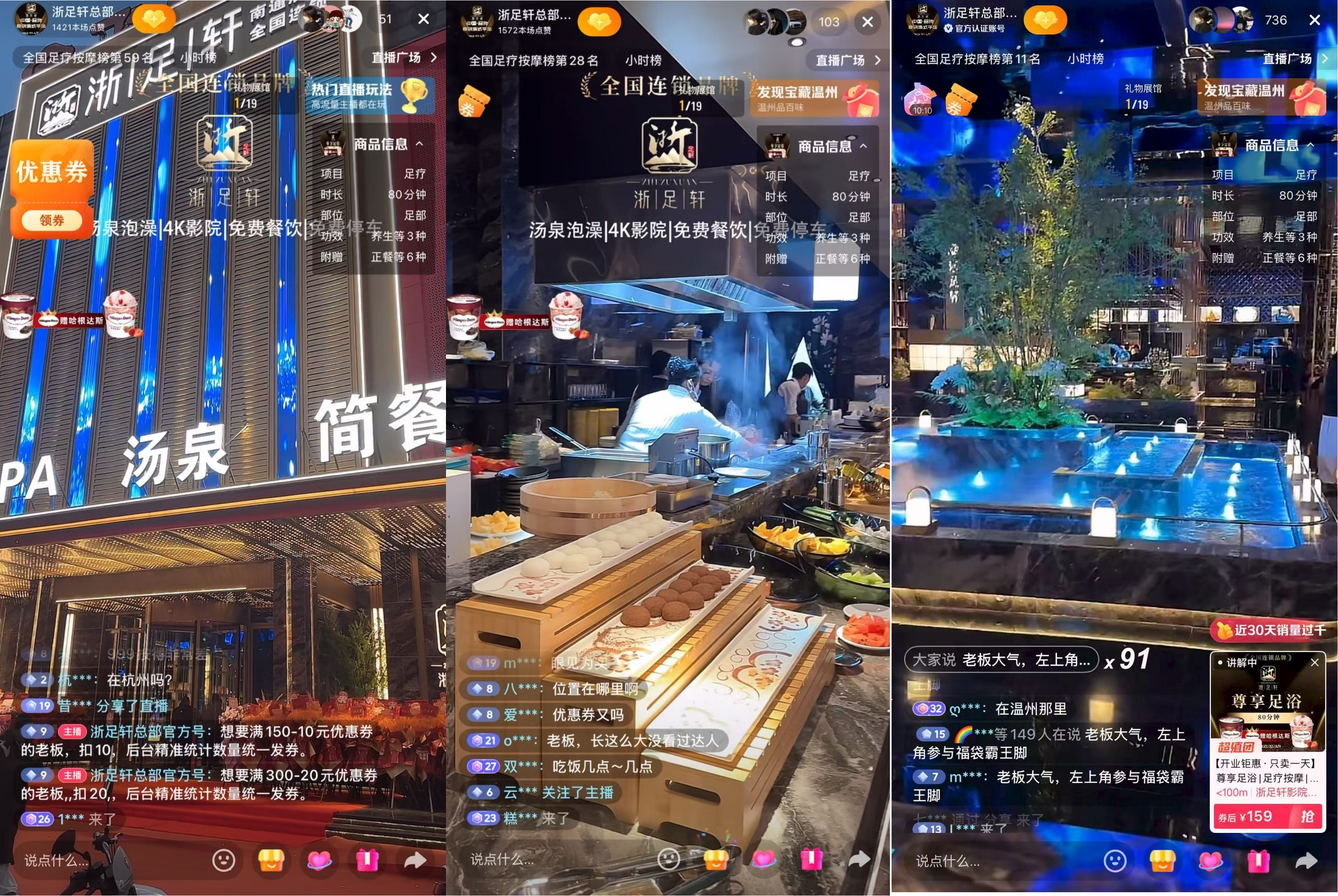 这套内容集中化策略的价值,在新店拓展过程中也被放大得尤为明显。每一家新店开业,浙足轩都在抖音将其当作一次线上大事件来运营。门店必做“实景走播”,以消费者视角完整展示空间环境、服务流程与实际体验,并同步释放限时限量的预售套餐。用户在直播里完成了一次心理体验,到店转化阻力被大幅降低。