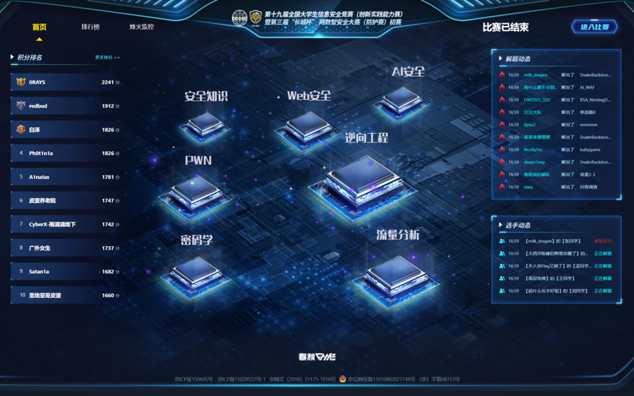 12月28日,第十九届全国大学生信息安全竞赛(创新实践能力赛)暨第三届“长城杯”网数智安全大赛(防护赛)初赛在云端成功举办。来自全国(含香港、澳门特别行政区)的804所高校的4150支队伍、逾万名学子齐聚线上赛场,同场竞技,在实战中检验能力,在对抗中砥砺成长。