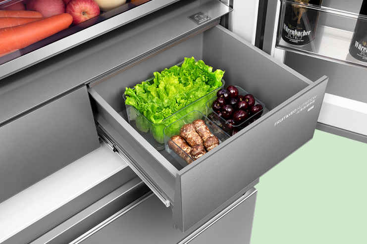 材质创新上,套系采用行业首创的钛铂银肤感面板,金属流光质感与玻璃细腻肤感浑然一体,尽显高级质感。空间融合层面,整套产品采用纯平全嵌和隐藏设计,既消除卫生死角,又规避孩童磕碰风险,实现家电与家居的“无界共生”。此外,经典黑银撞色源自钢琴键盘灵感,搭配独创能量柱动态显示图标,让视觉美感与操控便捷性达成双重统一。