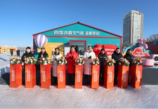 仪式现场,与会领导嘉宾共同剪彩,拉开了极寒环境下绿色温暖服务的新篇章。据介绍,温暖驿站在延续免费休憩取暖、姜茶热水补给、手机充电、互动打卡等经典贴心服务的基础上,通过四季沐歌空气能前沿热泵技术的深度应用,在零下二十多度的极寒环境中构筑起稳定舒适的温暖空间,让每一位体验冰雪乐趣的游客都能随时感受冰城温度与科技暖意。