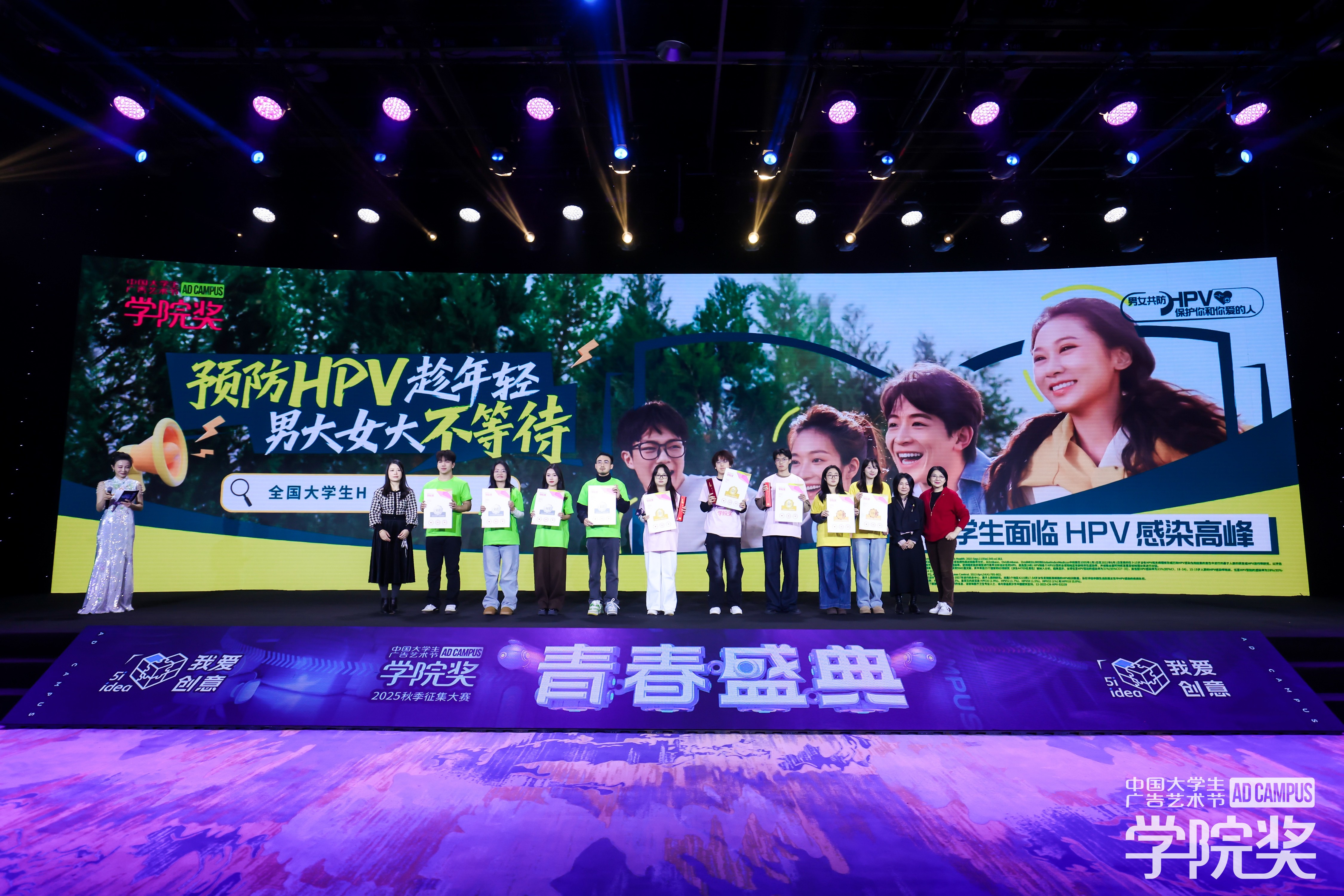 2025年12月29日,北京广播大厅内星光汇聚,2025秋季青春盛典迎来了一场意义非凡的仪式,由学院奖与默沙东联合发起的全国大学生HPV公益创意大赛成果发布暨颁奖典礼在此举行。本届大赛历时六个月,覆盖全国1200所高校,征集到来自青年学子的创意作品13877件,最终从众多优秀作品中评选出了一系列具有代表性和影响力的奖项。这不仅是一场创意的角逐,更是一次公共卫生教育范式的生动展示。来自全国高校的青年创作者以创意为媒介,在青春的舞台上,共同书写了一则关于预防HPV的当代青年叙事。