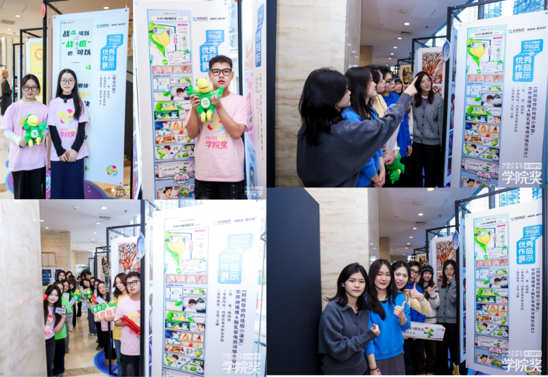 场内是荣耀加冕的感动瞬间,场外则是创意狂欢的欢乐海洋。盛典特设成果展示区域,本次大赛优秀获奖作品以沉浸式展板形式呈现,每一件作品都以年轻化的语言诠释着“爱自己,从皮肤开始”的生活态度。现场学子们、嘉宾们纷纷驻足,在欣赏学习创意之美的同时,对爱肤理念有了更鲜活的认知。