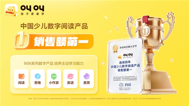 优质内容的持续输出,也让叫叫收获了市场与行业的双重认可。此次斩获多鲸“年度教育内容影响力品牌”前,叫叫已连续四年蝉联CIC灼识咨询认证的“中国少儿数字阅读第一品牌”,先后入选世界互联网大会实践案例集、国家新闻出版署数字出版精品遴选推荐计划,斩获红点奖、iF设计奖等多项国内外权威奖项。目前,其用户已覆盖177个国家和地区、469座国内城市,形成了广泛的品牌影响力。