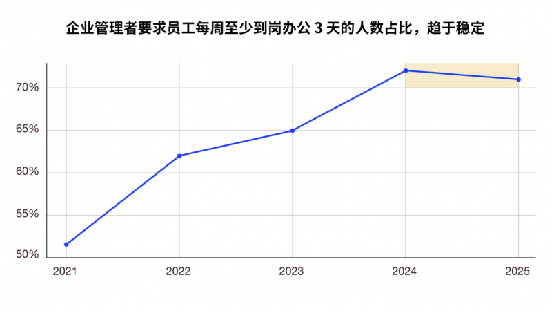 随着混合办公模式趋于稳定,企业对未来规划的思路愈发清晰、信心也日益增强。预计近半数员工将全职返岗办公,且始终有70%的员工每周至少到岗3天。基于这一现状,企业管理者如今可在办公空间设计、企业文化建设及协作模式优化等方面,做出更具依据的决策。