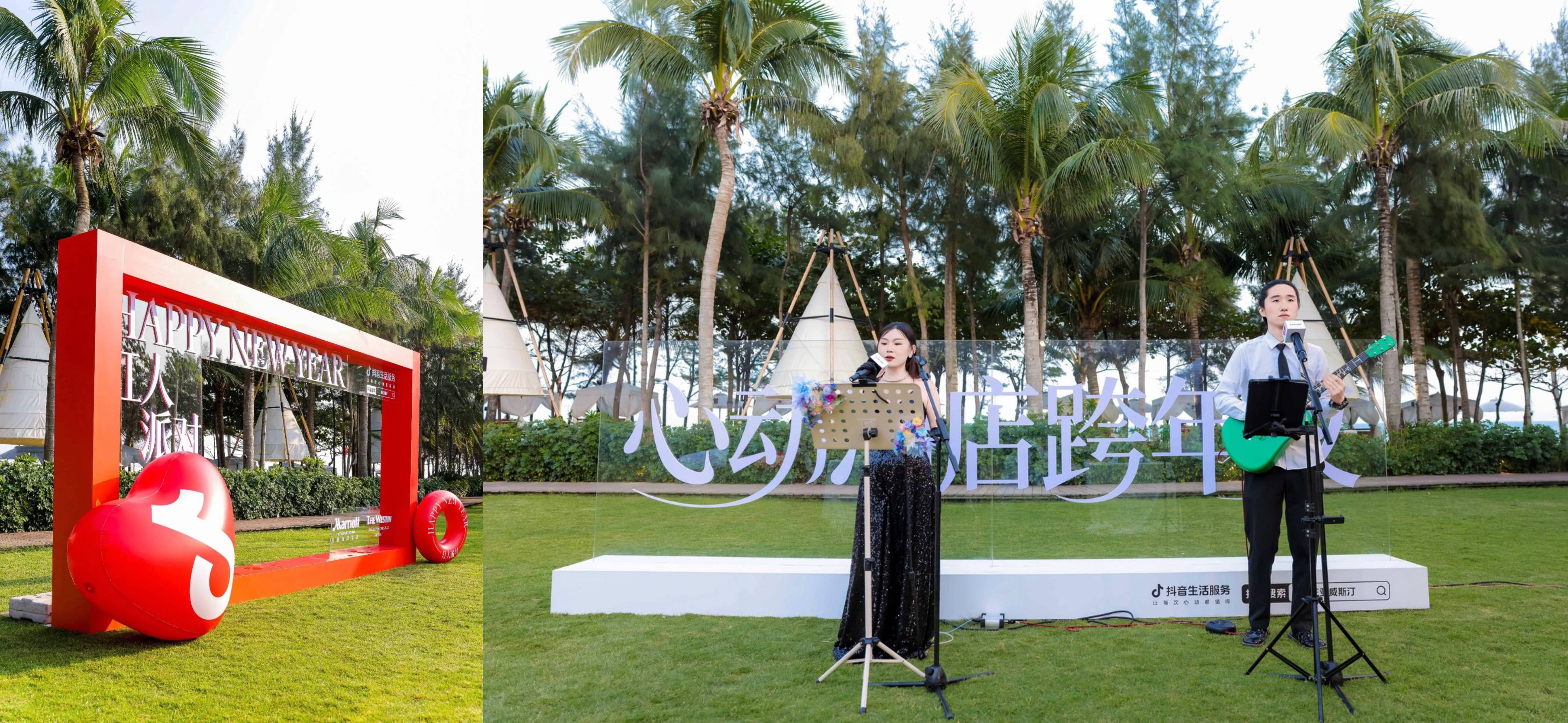 抖音精准联动近20位潮流、旅行类达人深度参与,通过达人的视角与创作,将酒店的特色餐厅、天际酒吧、临海花园等场景重新“定义”为跨年必打卡点位:达人们走红毯拍摄群像;在天际酒吧记录“零点举杯看烟花”的浪漫;在海边餐厅解锁跨年定制套餐;在临海花园呈现欢聚场景……