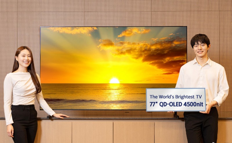 在自发光显示领域,三星同时展示了2026款QD-OLED电视。此次推出的77英寸QD-OLED电视其峰值亮度提升至4500尼特,已接近当前显示技术的上限。通过量子点与OLED的组合,QD-OLED在高亮度场景下依然保持饱和色彩输出,这一特性在AI驱动的画质增强场景中尤为重要。