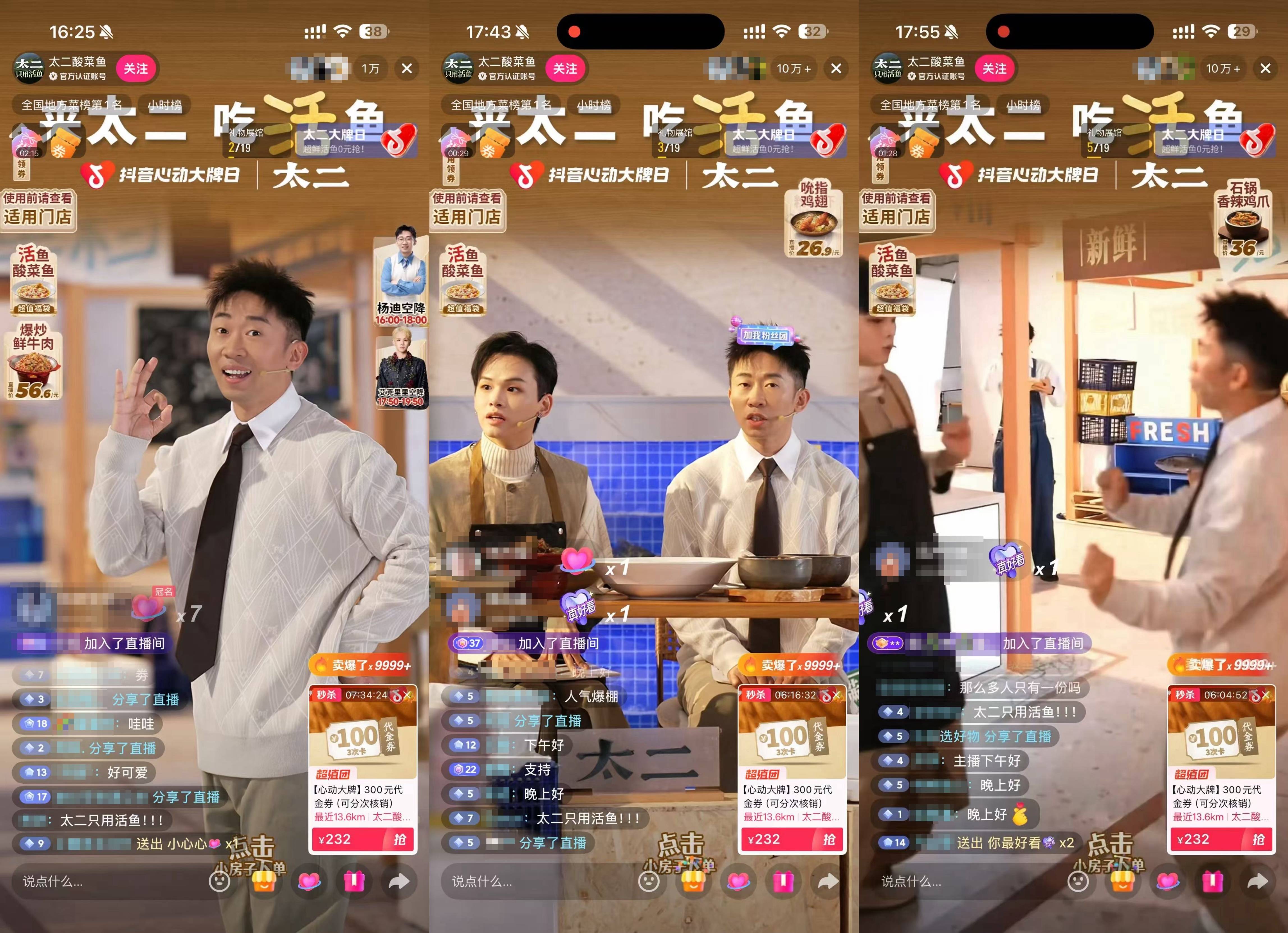 在此背景下,太二敏锐把握市场趋势,将 “鲜活” 确立为品牌焕新的战略核心,于12月1日至14日期间,携手「抖音心动大牌日」发起“来太二,吃活鱼!”焕新行动。品牌首先夯实产品根基,完成全国门店活鱼供应链的体系化升级,实现“活鱼当日到店、当日烹制”的稳定保障;继而展开协同传播,通过与「抖音心动大牌日」的深度合作,依托平台级IP的聚合效应,将“太二只用当日活鱼”的供应链能力,高效转化为用户端的品牌认知与信任积累,完成从产品价值到品牌价值的重要跨越。