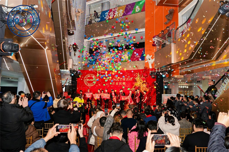 奥莱市客全球首店启幕仪式盛大结束现场彩带、礼花漫天绽放