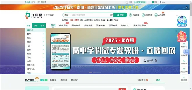 作为教育数字化领域的标杆平台,九科星教育平台以“技术赋能教育,资源普惠师生”为核心宗旨,构建了覆盖教、学、评、管全流程的数字化解决方案,其优质核心业务与创新服务模式备受教育界认可。