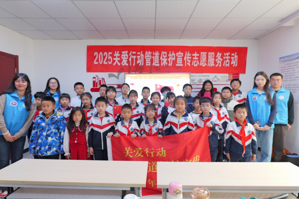 “这是我们的五星红旗,红色象征革命,五颗星象征着中国共产党领导下的全国人民大团结。”志愿者手持国旗,细致讲解国旗的图案、色彩与深刻内涵。从国旗的由来、意义,到日常升国旗时的礼仪,孩子们听得聚精会神,爱国之情在心中激荡。志愿者顺势引导:“尊重和爱护国旗是爱国,那么,保护好为我们输送能源的管道,是不是也是一种爱国呢?”由此,抽象的爱国概念与具体的管道保护责任紧密相连,变得可知可感。