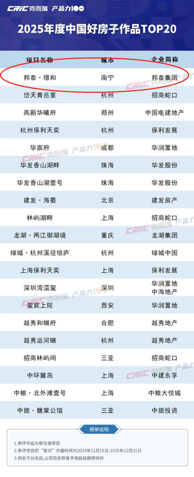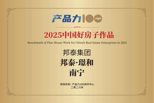 1月8日,克而瑞地产研究主办的“为更好 启新篇”——2025年中国房地产企业产品力TOP100发布会在上海隆重召开。邦泰境系产品获评“2025全国房企十大品质美宅产品系”、南宁邦泰·璟和上榜“2025年度中国好房子作品TOP20”。