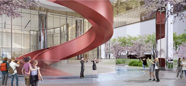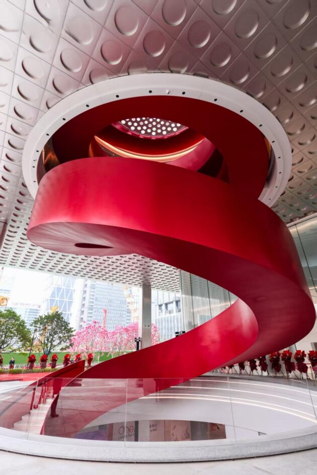 在光影交织中,楼梯的红色曲面与玻璃幕墙相互映照,构成建筑独特而极具辨识度的视觉符号。孙怀庆博士表示:“我们将这座红楼梯向社区开放,其价值不仅在于造价,更在于主动让渡了其占据的商业面积及长期租金收益。作为企业,在追求卓越的同时,我们更应成为优秀的企业公民,担负起对社区的使命。”